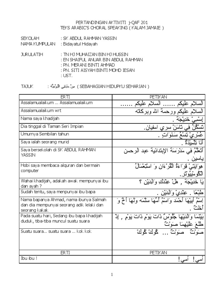 CONTOH TEKS KALAM JAMAIE BAHASA ARAB كلام جماعي اللغة العربية. 31 Tugas ketua hakim. Click to expand document information.